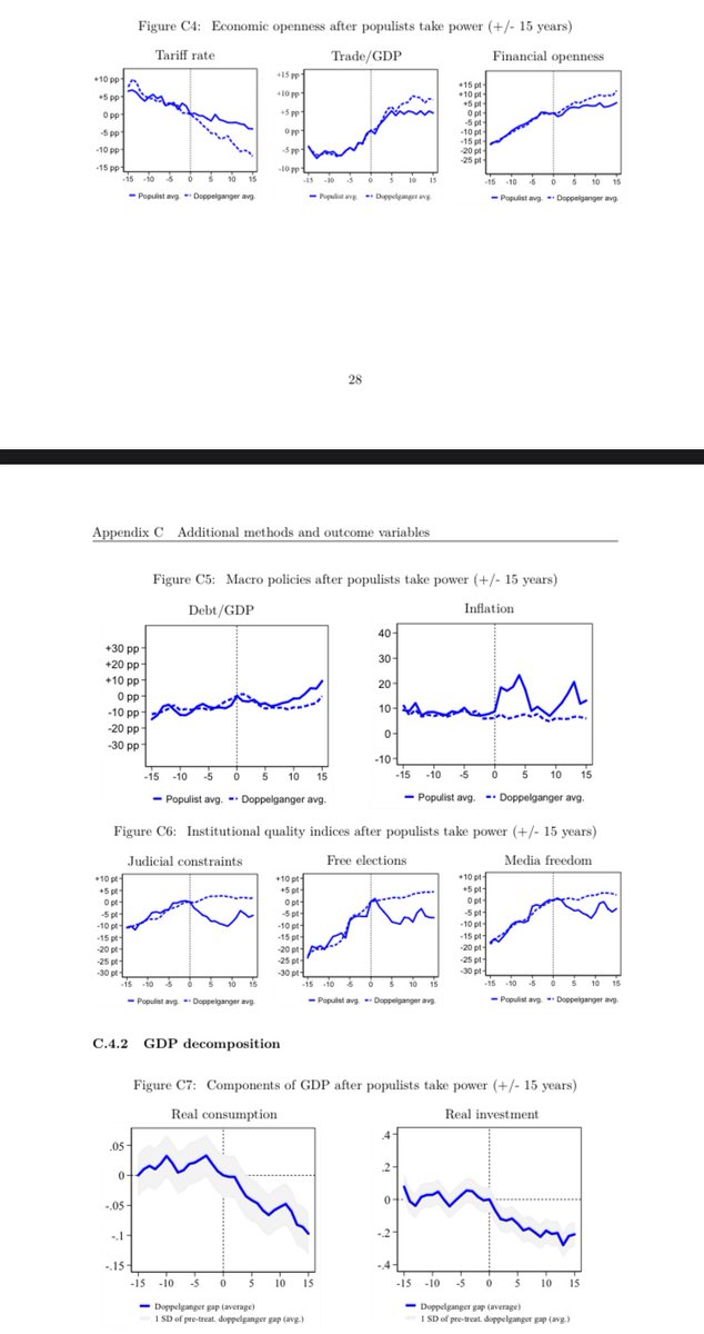 The more you drill into details, the worse LW populism looks (esp in LatAm & pre-1990), & the less awful RW populism looks (eg see pic separating emerging from advanced economies). & populist power grabs are more surprisingly bad when they’re more surprising. Cf other correlates: