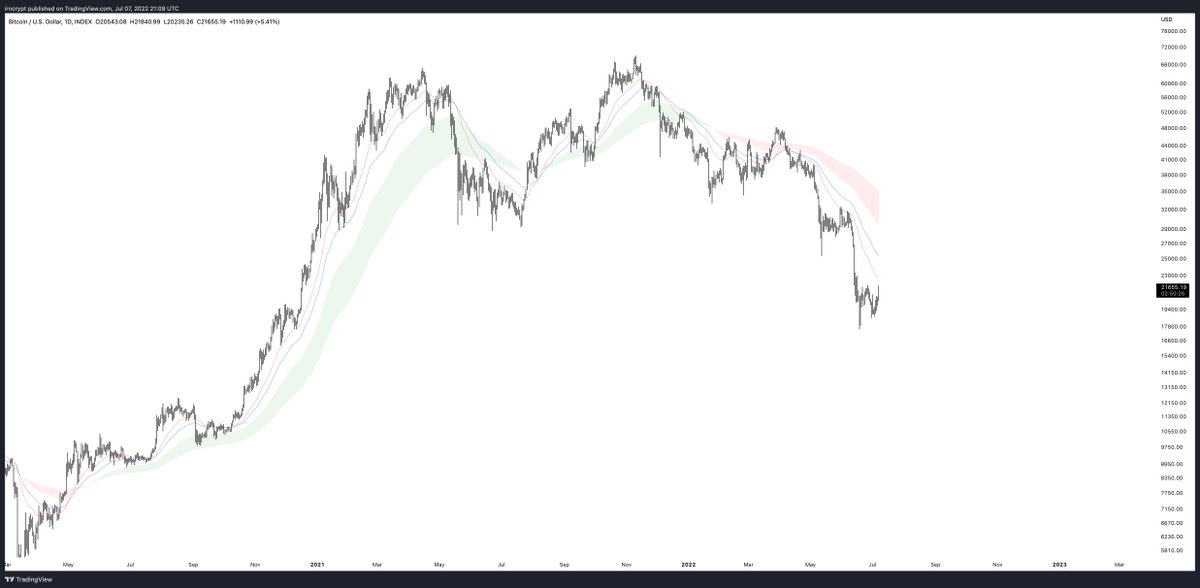 As it stands today, the EMA cloud is red and we haven't even touched the fastest moving average yet ...
