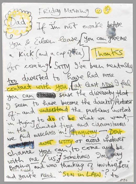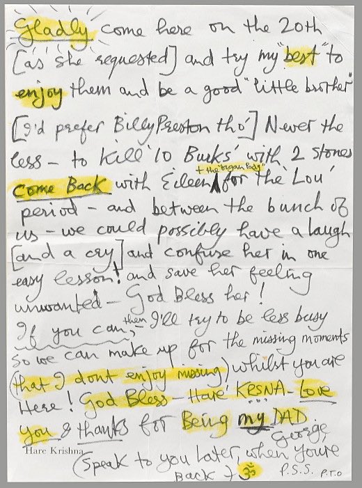 a note written by george harrison to his father, date unknown. +