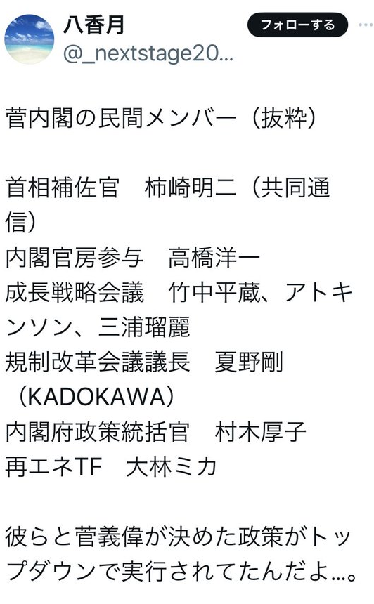 https://twitter.com/hinabe_ch/status/1659519072915312640実際に「権力者はなんでもできる」と思い込んだ菅直人は法的根拠のない原発停止要請をして、結果として火力の燃料代としてこの10年間で何兆というお金をドブに捨て、さらにこれから電気代の高騰により(原発の動いていない地域の)庶民に塗炭の苦しみを舐めさせようとしているわけですよ