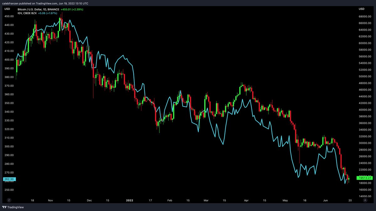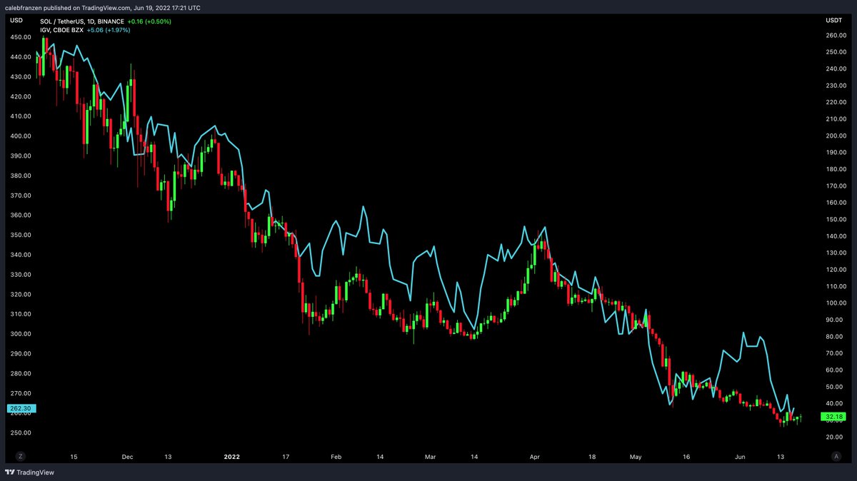 Let's analyze $SOL (candles) vs. $IGV (teal) since the peak in Nov.'21.