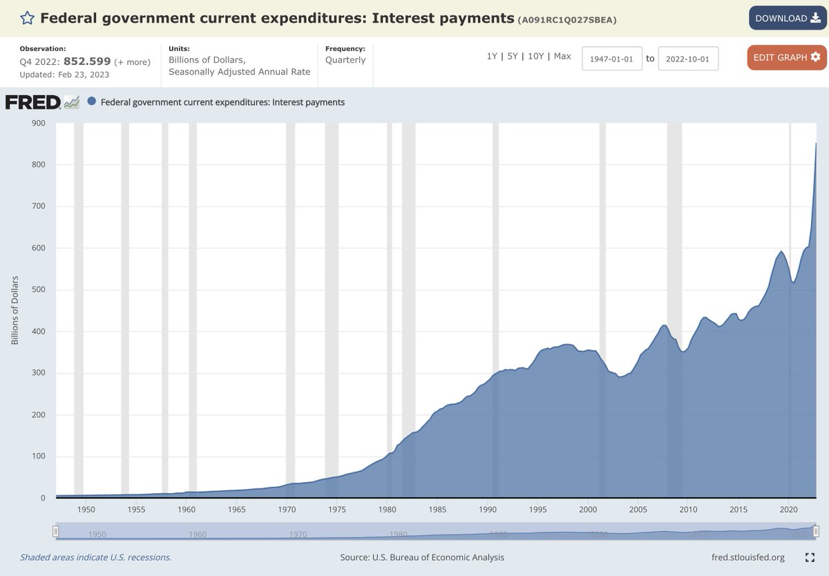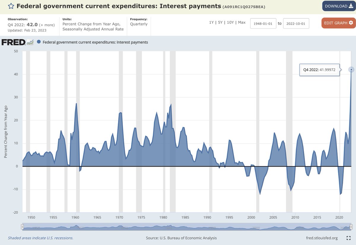 Instead of looking at the nominal value, look at the YoY rate of change! We've never seen interest expense accelerate this fast!