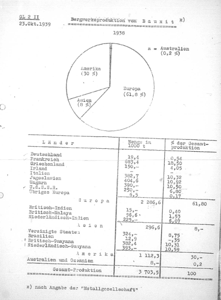 1) 1938 chart in the Luftwaffe top level meeting records, showing that Germany produced 0.5% of global bauxite ore, needed for Aluminium production.