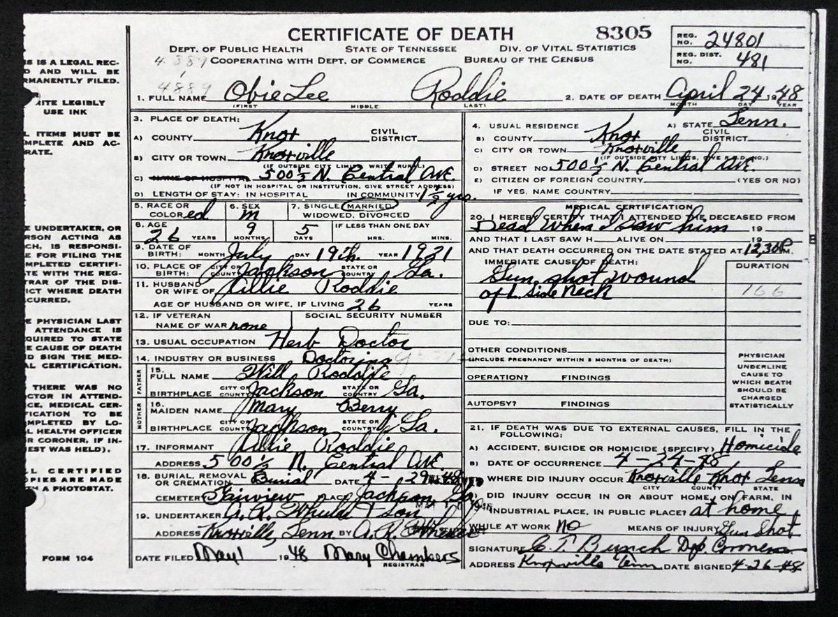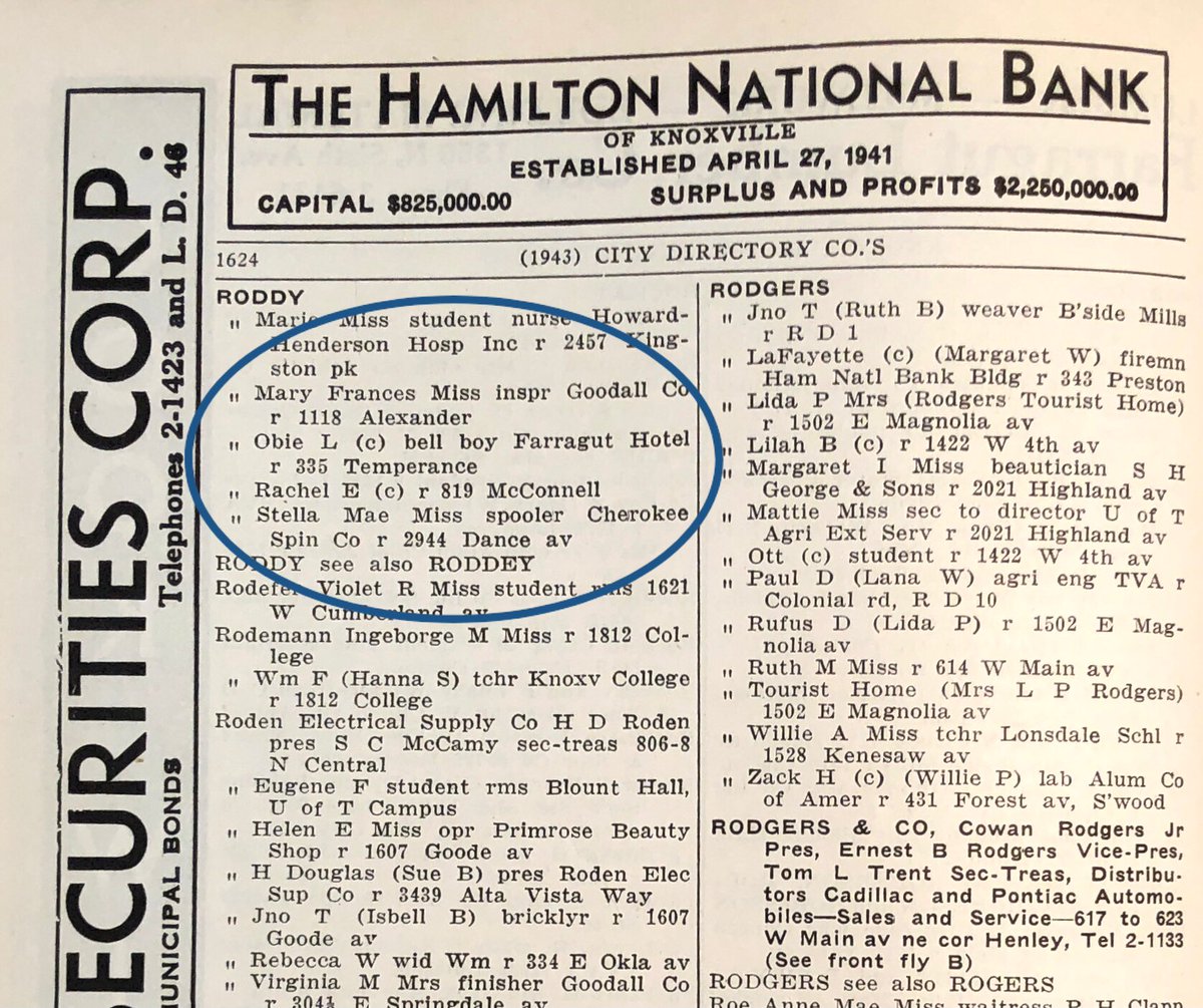 Obie Lee Roddie/Roddy, orig fr GA, appears in the Knoxville City Directory 1943-1948. His jobs during that time, incl bellboy at the Farragut Hotel (now our cross street neighbor, @hyattplaceknoxville).