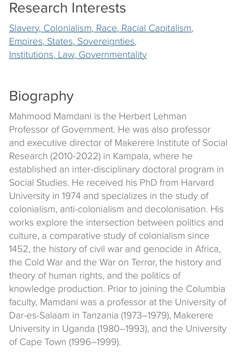 In 2016, Mahmood Mamdani signed a letter in support of @ColumbiaBDS, when it originally formed as a group to promote the BDS movement. The letter signed by faculty members of @columbia called for @columbia to divest from Israeli holdings.