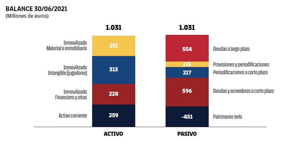 Esta imagen refleja la economía actual del FC Barcelona, unas pérdidas muy elevadas que se han comido el patrimonio (quiebra técnica) y una deuda tanto a largo como a corto muy elevada.