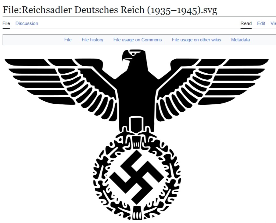 2. Gli ucraini non si sono limitati a usare un’aquila somigliante a quella NAZISTA, ma hanno letteralmente preso da Wikipedia il file dell'aquila del Terzo Reich di Hitler, stampandola sulla bandiera dell'OUN di Bandera alleato di Hitler, sostituendo la svastica con il tridente.