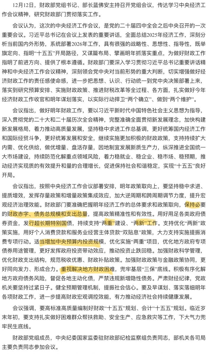 财政,超预期:赤字100%提高,“保持必要赤字”是新提法,预计4.2%;但“规范税收优惠、补贴”也是我此前提到的宏观税负抬升;“重视解决地方困难”,算新提法,但限于“三保”;