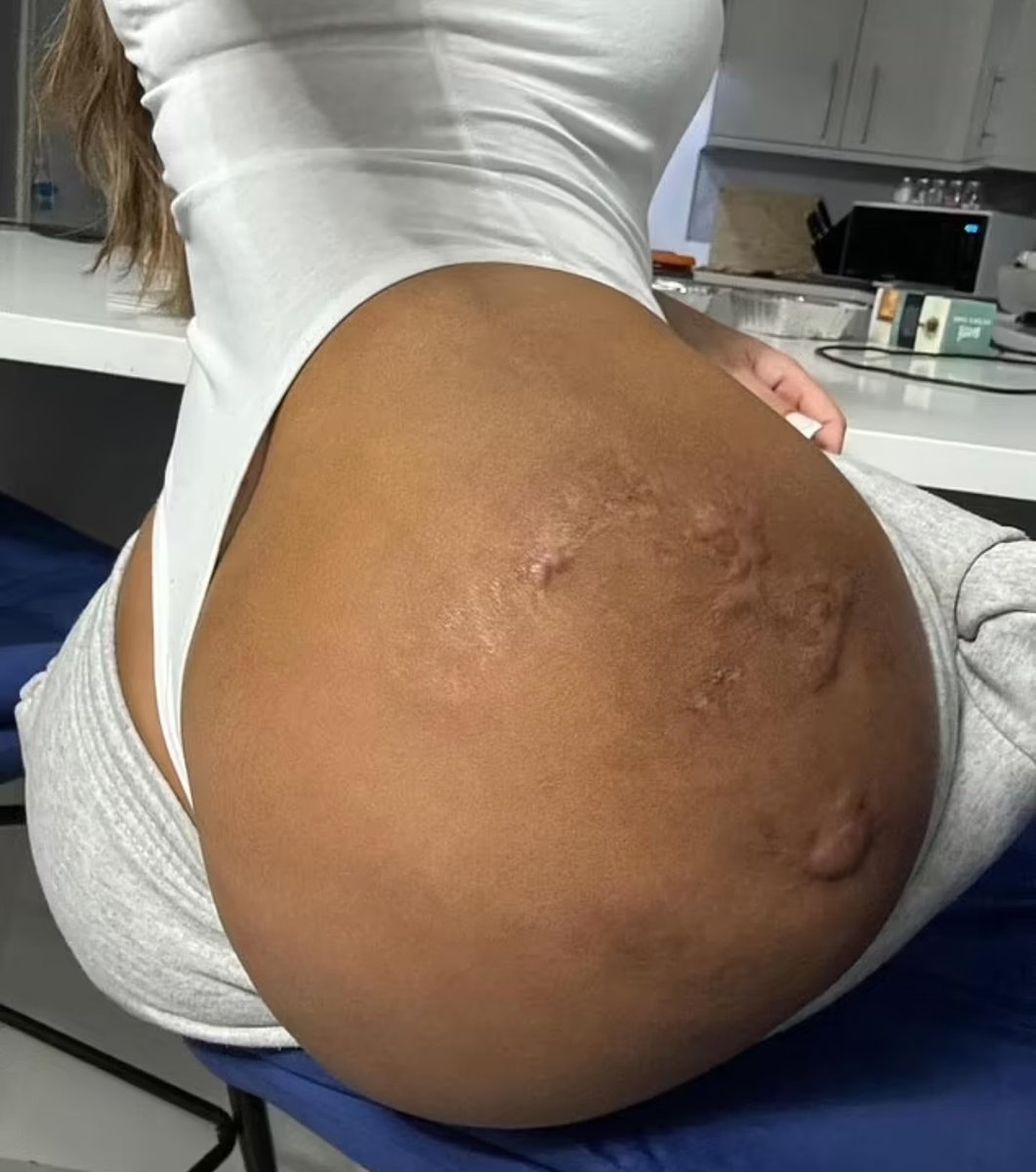 So yes, it’s still her fat, just relocated. Inside, it’s like pockets of fat sitting in new places that nature didn’t originally put them.