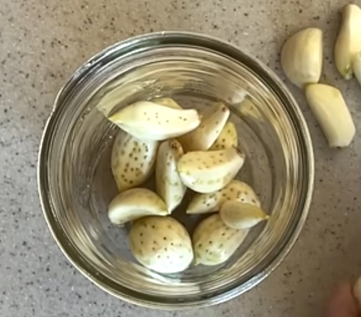 ✍️Use a toothpick or needle to make holes in the peeled garlic cloves.