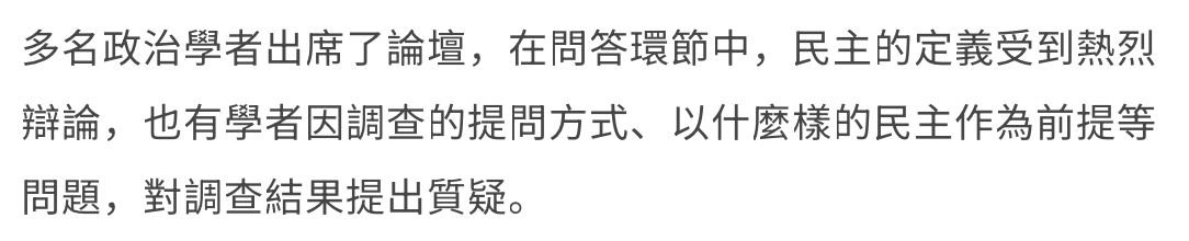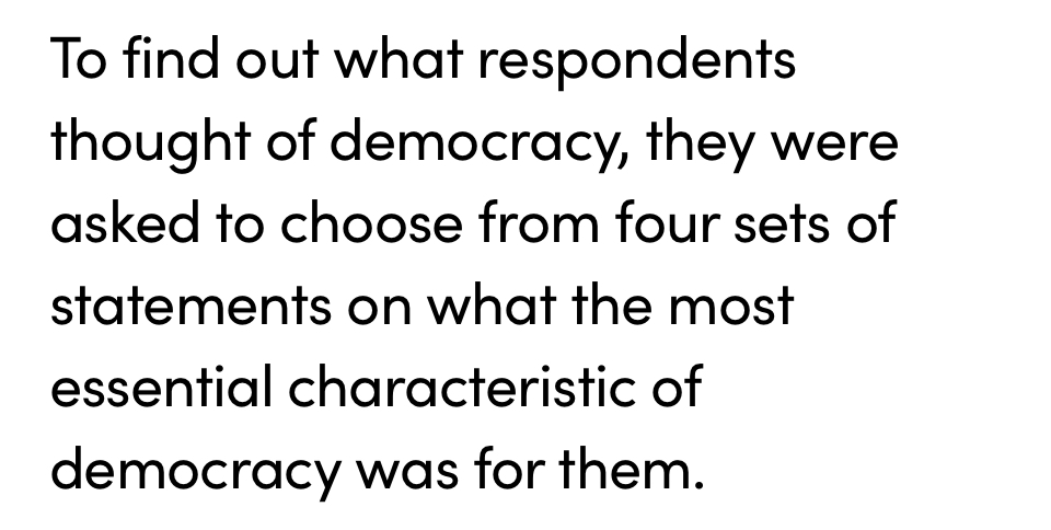 In lumping econ performance & distribution w/ political & civil rights (& also voting, which was mentioned in the event, but not the article) as democracy, it becomes unclear which sentiment is actually doing the work for respondents.