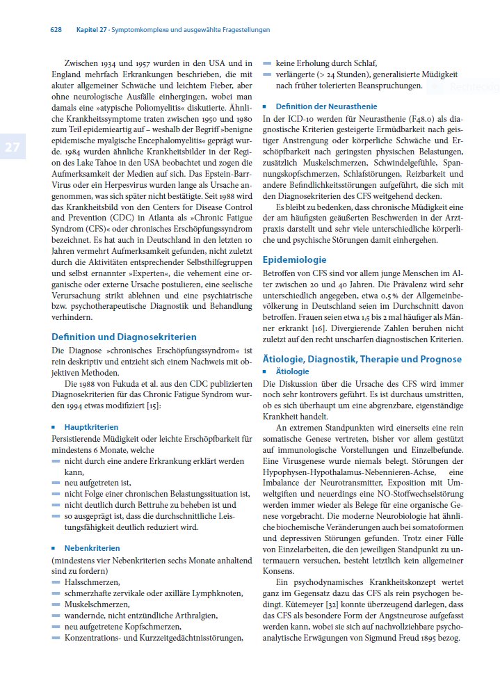 Das Referenzurteil, das die Grundlage für die reflexhafte Einstufung auf GdB 30-40 zur Folge zu haben scheint, hat das Aktenzeichen L 3 SB 182/10. Das nimmt Bezug auf Hausotter: "Begutachtung somatoformer und funktioneller Störungen" von 2004, was mir nicht vorliegt. Man kann aber Hausotters Bewertung von ME/CFS in "Sozialmedizinische Begutachtung für die gesetzliche Rentenversicherung" von 2011 nachlesen, Abschnitt 27.3.2 "Erhöhte Erschöpfbarkeit".