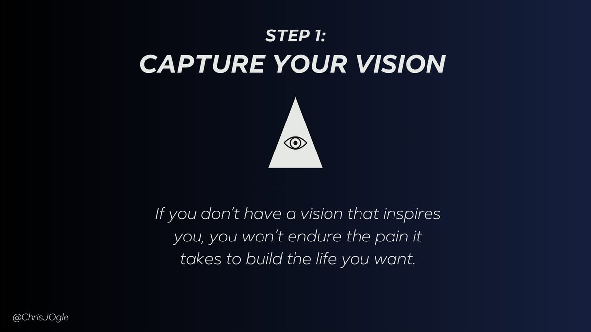A VISION is a clear picture of what you'd like to be, do & have in your life—positives AND negatives. Remember, this is a reality you're building, not a fantasy.