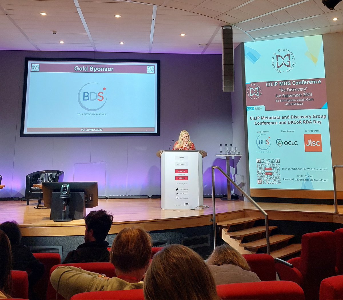 We are just getting underway at the Metadata and Discovery Group Conference and RDA Day with MDG chair Prof Diane Rasmussen McAdie @infogamerist #CILIPMDG23