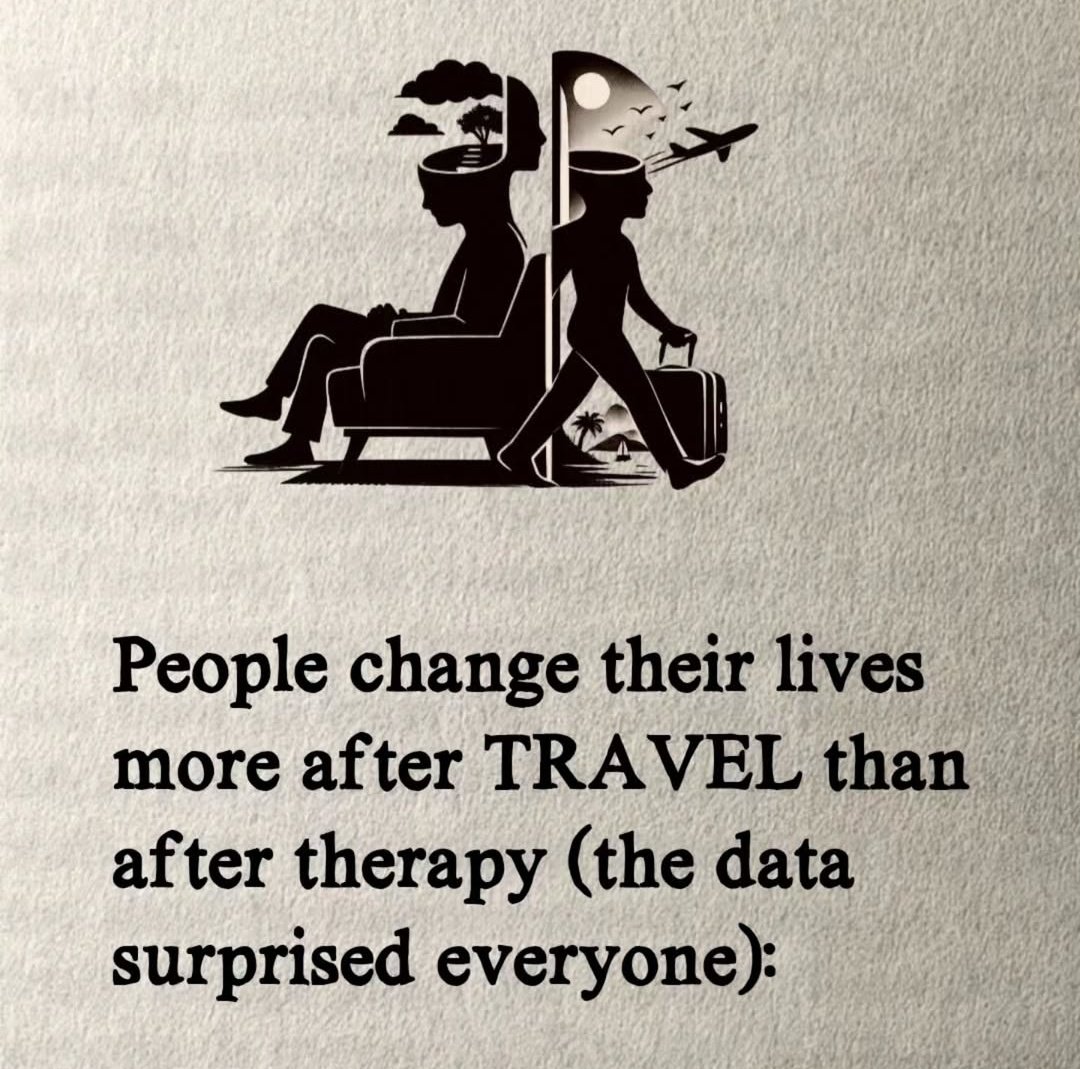 People completwly change their life more after TRAVEL than after threrapy..