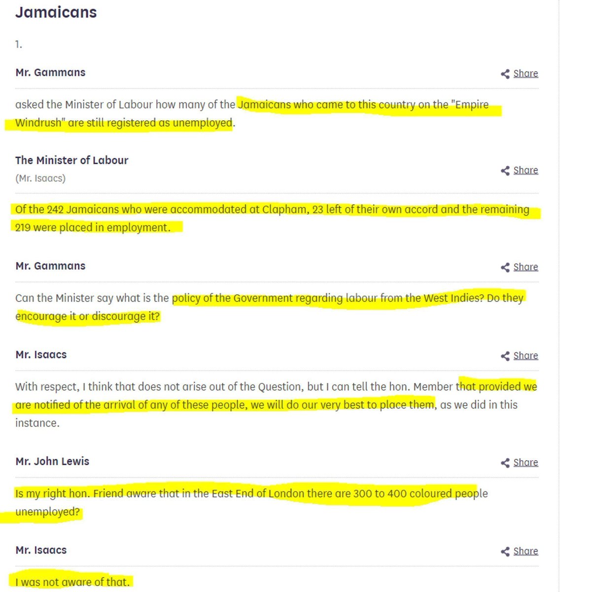 2/ Here are the contemporary parliament debates regarding the Windrush.