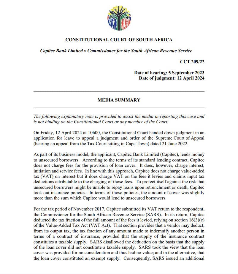 (1/6) Judgment: Capitec provided its customers with a loan cover free of charge. Accordingly, the loan cover had a nil value. Although the loan cover was supplied free of charge, this did