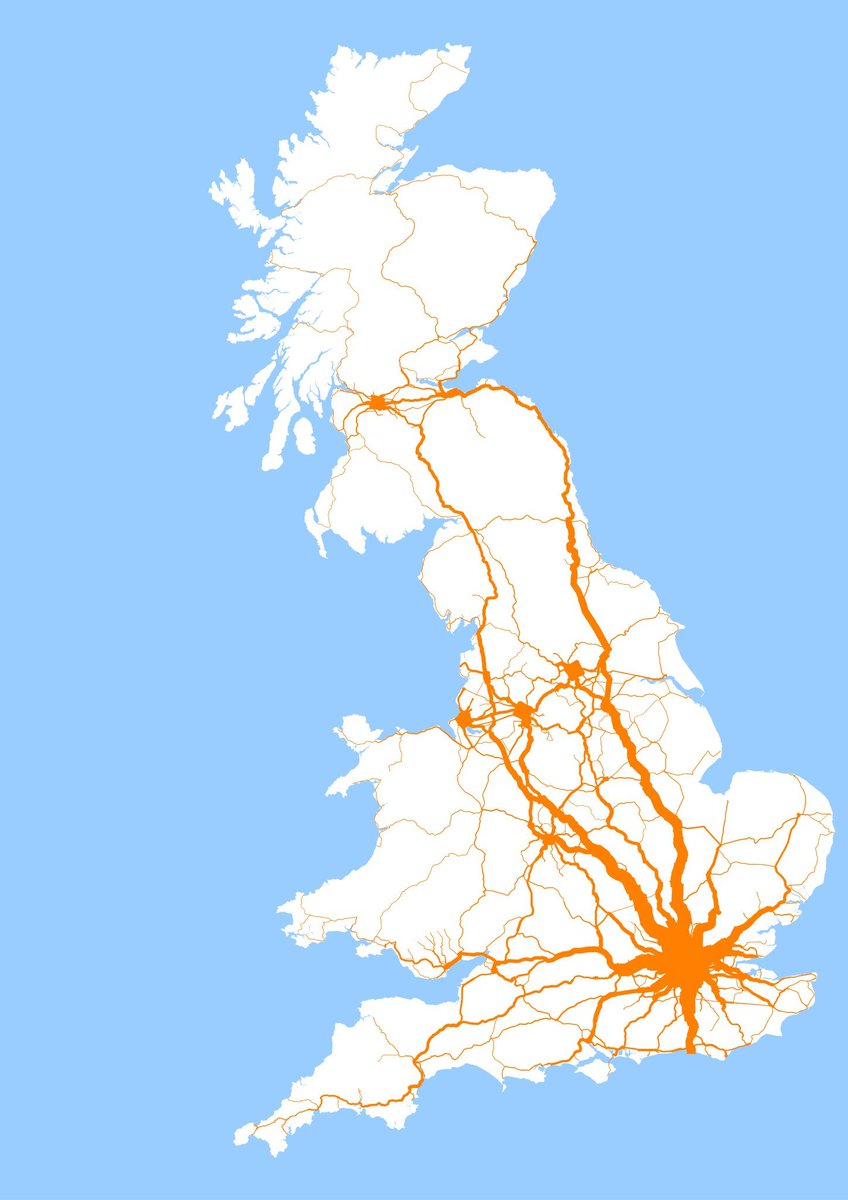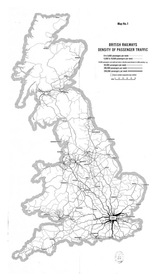 Here's how Beeching's rail passenger flow map from 1963 looked, for comparison, via @undertheraedar