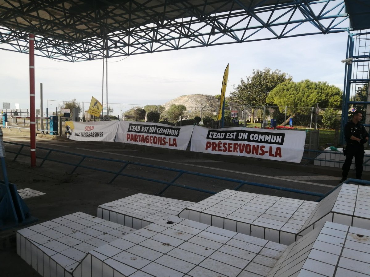 En prélude du week-end à Sainte-Soline pour dire Stop aux méga-bassines, nous avons porté la voix paysanne devant les silos de céréales exportées de Sica Atlantique présidée par un administrateur d'@OcealiaGroupe, coopérative favorable aux méga-bassines