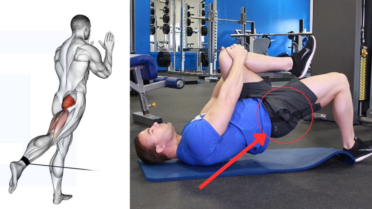 For the glutes, this means getting a deep stretch through hip flexion, such as a hinge: