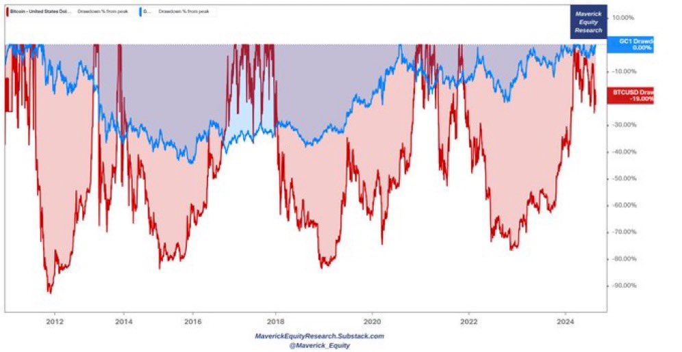 *Last ten years - Gold’s largest drawdown? 21% vs. Bitcoin -82%, -58%, -65%, -75%.