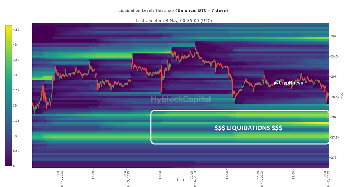 The liquidation levels are showing a great amount of long liquidations at the moment which puts the market at risk of a new long squeeze.