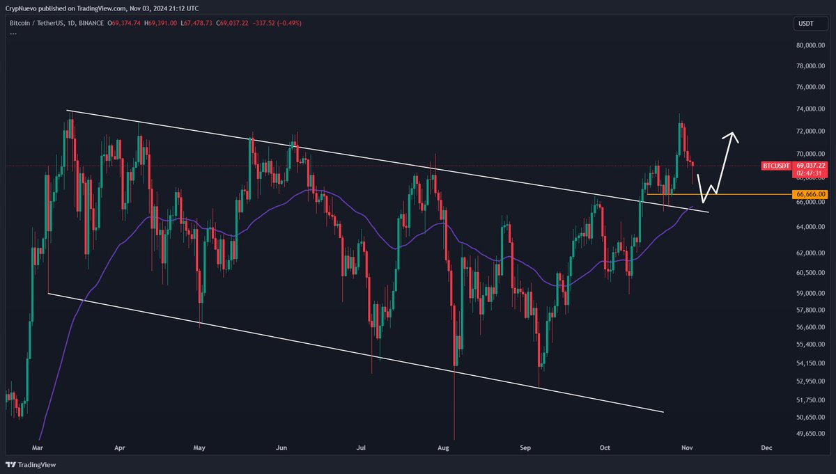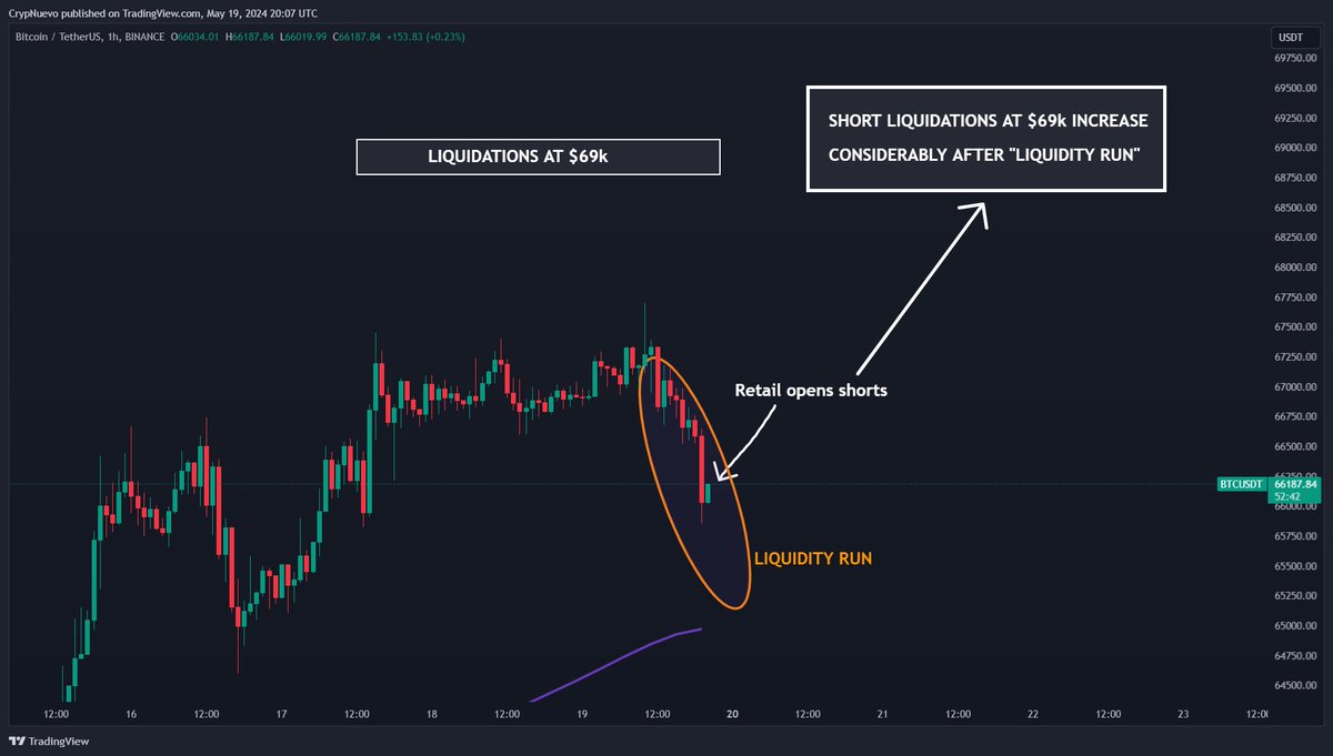 Those HTF liquidations at $69k are short liquidations from swing traders that took the wrong trade.