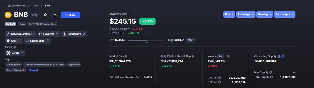 Öncelikle herkesin bildiği şeyler ile başlayalım. @coingecko ve @CoinMarketCap token takibi için en fazla kullanılan siteler. İkiside bu alanda oldukça başarılı. Bu sitelerde projelerin toplan arzını, dolaşım arzını gibi bir çok Farklı metriği inceleyebilirsiniz.