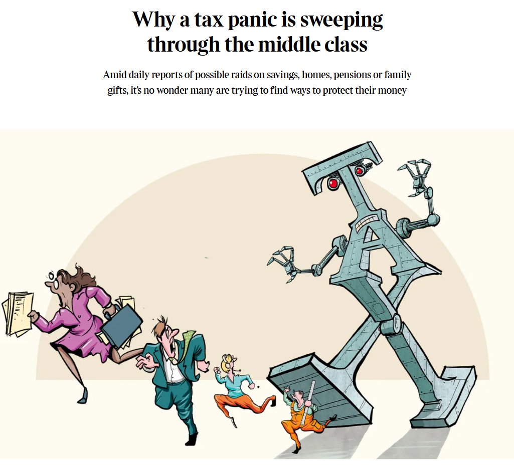 "Fears of an imminent tax grab on the middle class has sent a wave of panic across the country," reports the Sunday Times.