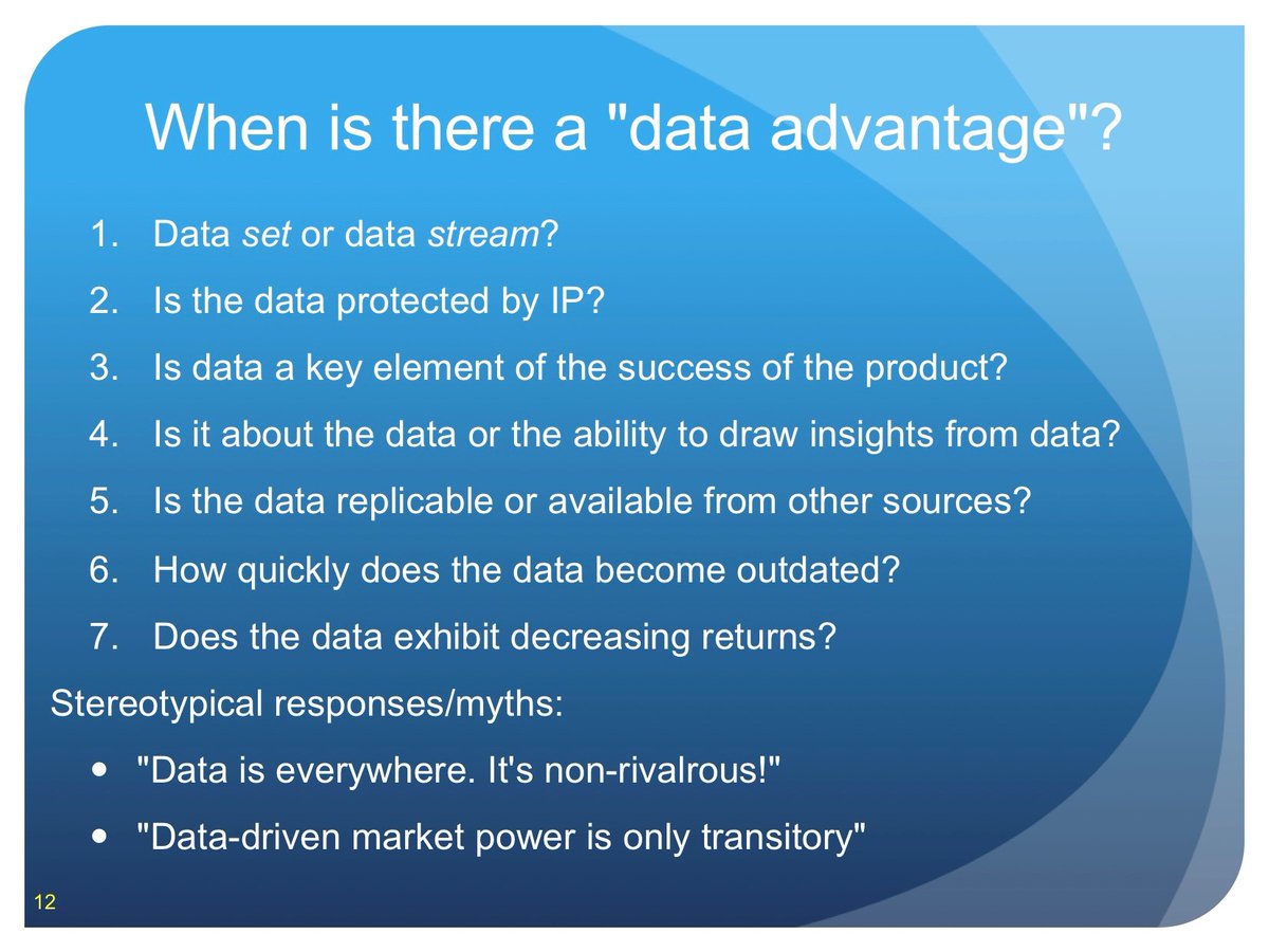 The piece makes 2 key points: (1) there is a data advantage only under some conditions & (2) the data-enabled network effect is less powerful than the standard network effect 2/10