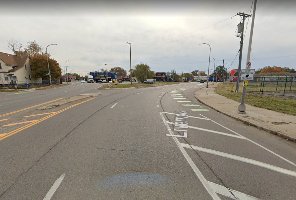 This is exactly the kind of scenario that @schmangee talks about in Right of Way. MDOT will do nothing to make this intersection safer. Pedestrians are "Unsafe on any Street." This style of unprotected bike lane is also unsafe. It puts cyclists in conflict with the turn lane.