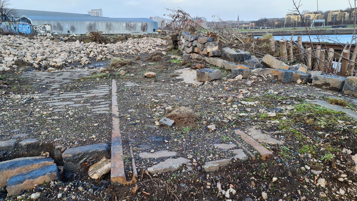 What remains of the west quayside of the basin. There is a brilliant old photo at the link below.