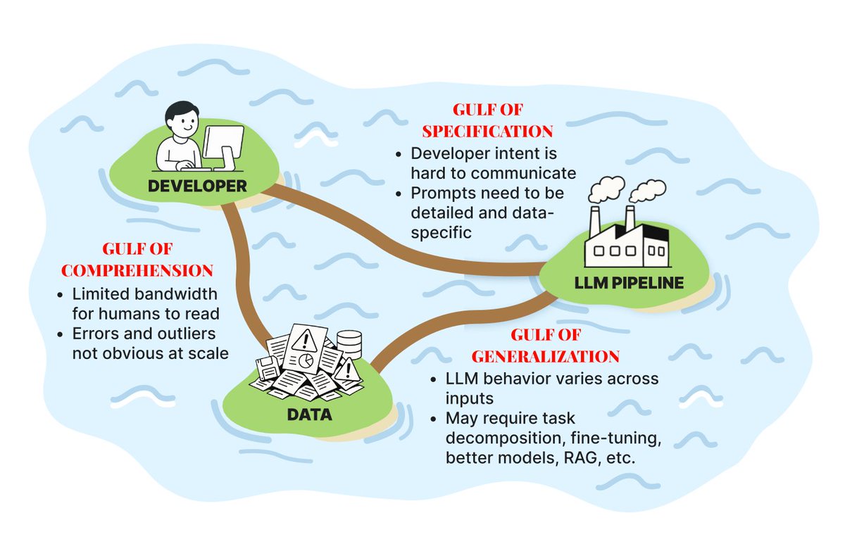 Developing LLM apps is tough because of the "Three Gulfs":