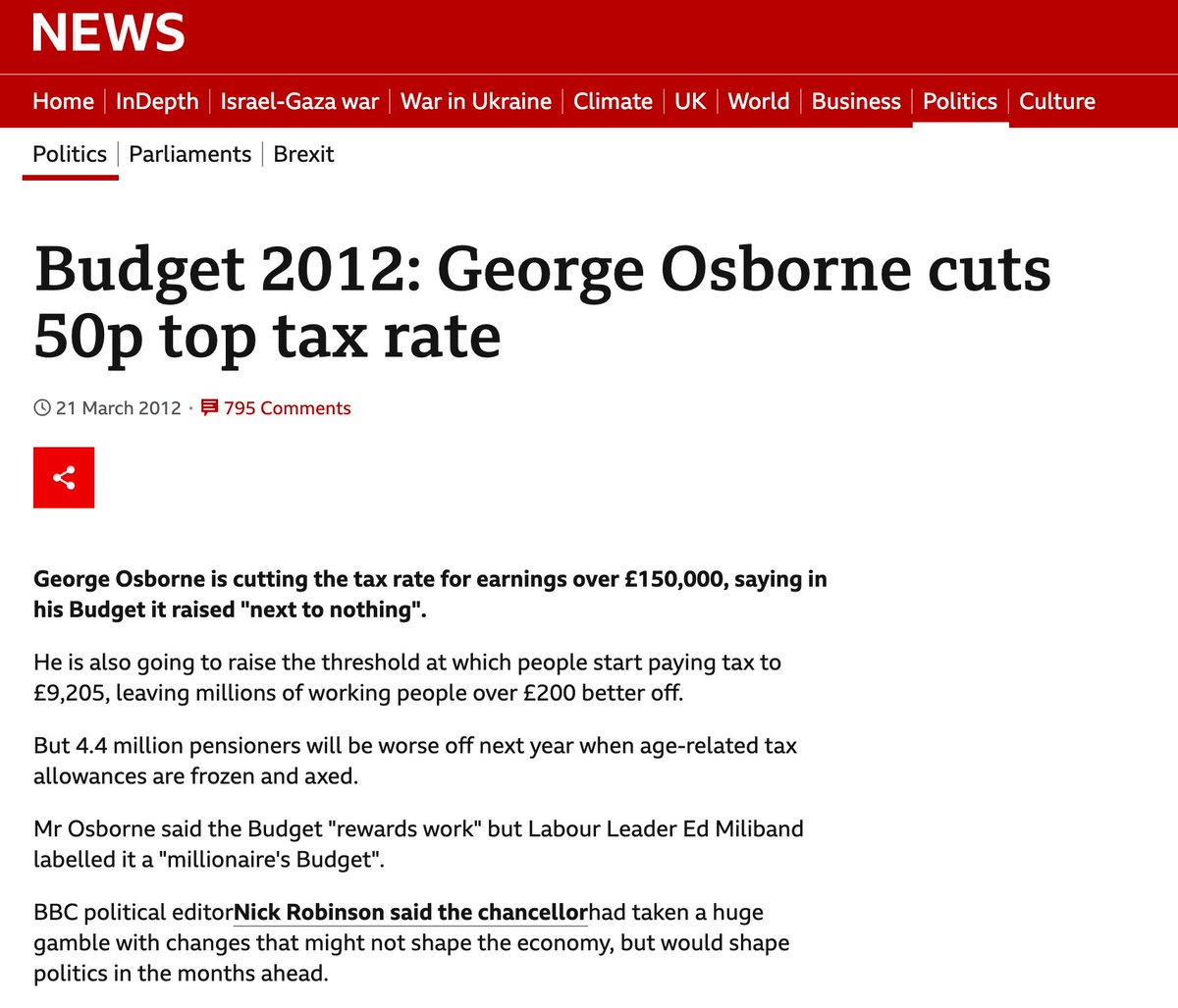 The top ("additional") rate was 50p from 2010 to 2013, on income over £150k.