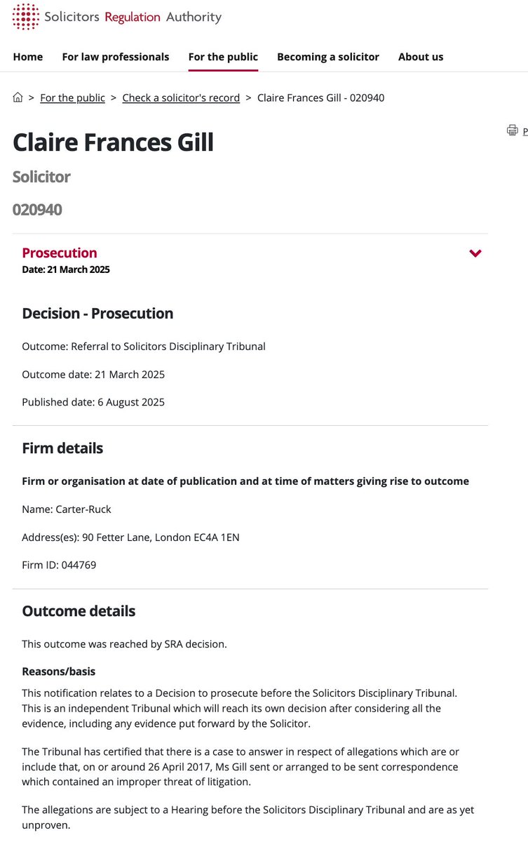 Just announced: the UK's most famous libel firm, Carter-Ruck, is being prosecuted before the Solicitors Disciplinary Tribunal for recklessly enabling a $4bn fraud