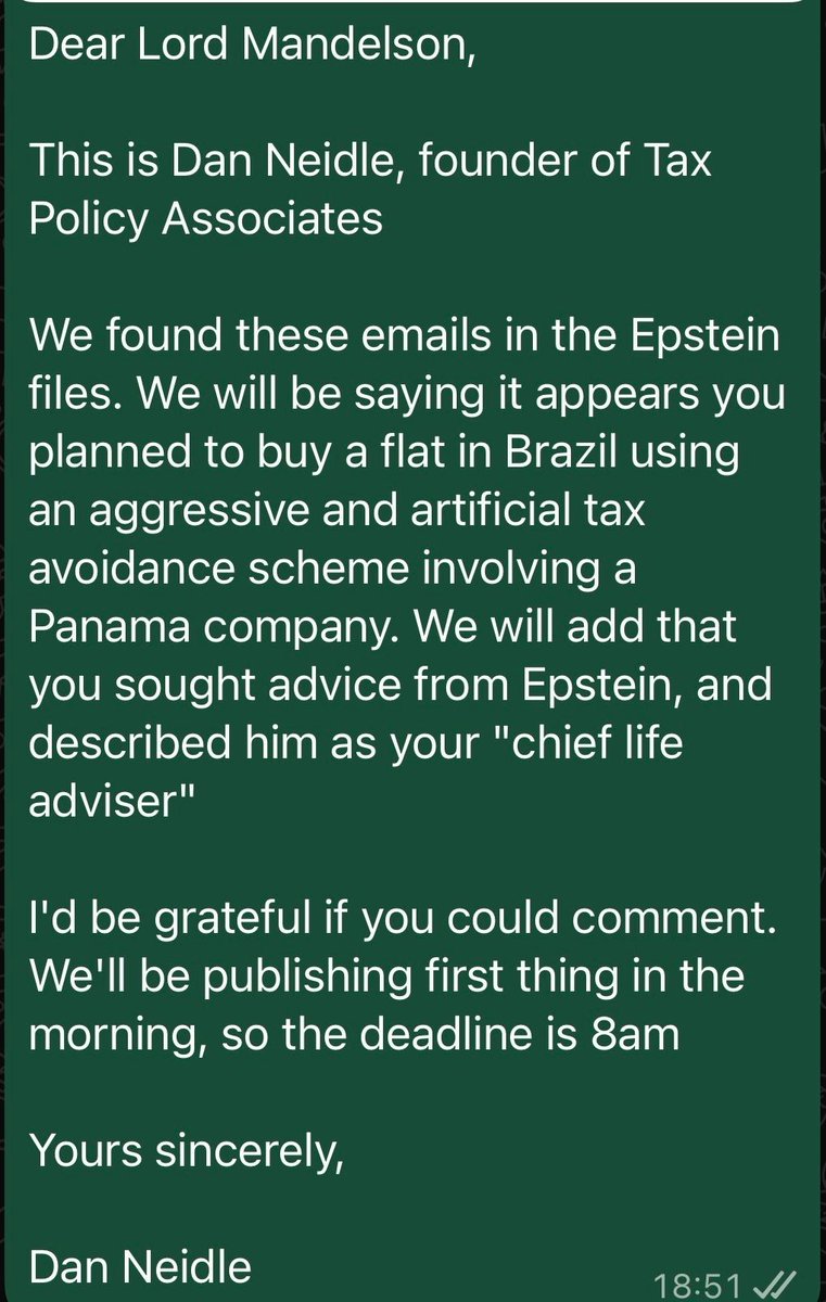Mr Mandelson says he has no recollection of the proposal, or knowledge as to the authenticity of the documents.