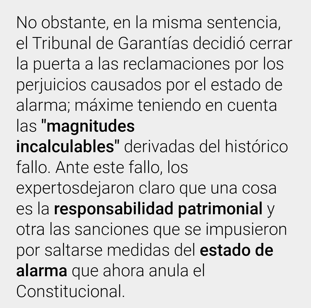 El tribunal Supremo es plenamente consciente de la magnitud del daño jurídico causado cerrando las puertas a las reclamaciones de los ciudadanos a las administraciones públicas por imposición de las medidas LIBERTICIDAS que califica de "antijurídicas"