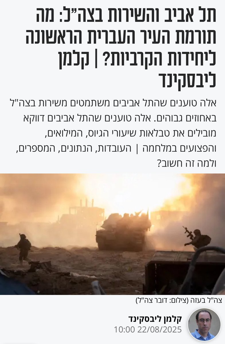 קלמן מביא בכתבה נתונים רבים שאתייחס אליהם. אני רוצה להתחיל מהבסיסי ביותר - כמה מבני ה-18 בתל אביב מתגייסים לקרבי? קלמן טוען שרק 33% מהגברים המתגייסים התל אביבים הולכים לקרבי ושזה נמוך משמעותית מהממוצע הארצי של 51%. זה לא נכון, המספר האמיתי הוא 45%. תכף נבין את מקור הטעות.