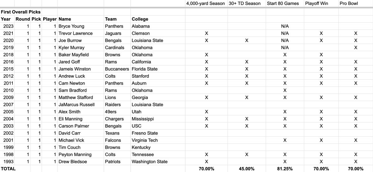 I pored over the last 30 years of first-round QB data and found out that drafting at No. 1 overall gives teams overwhelmingly better odds at finding success for their franchise.