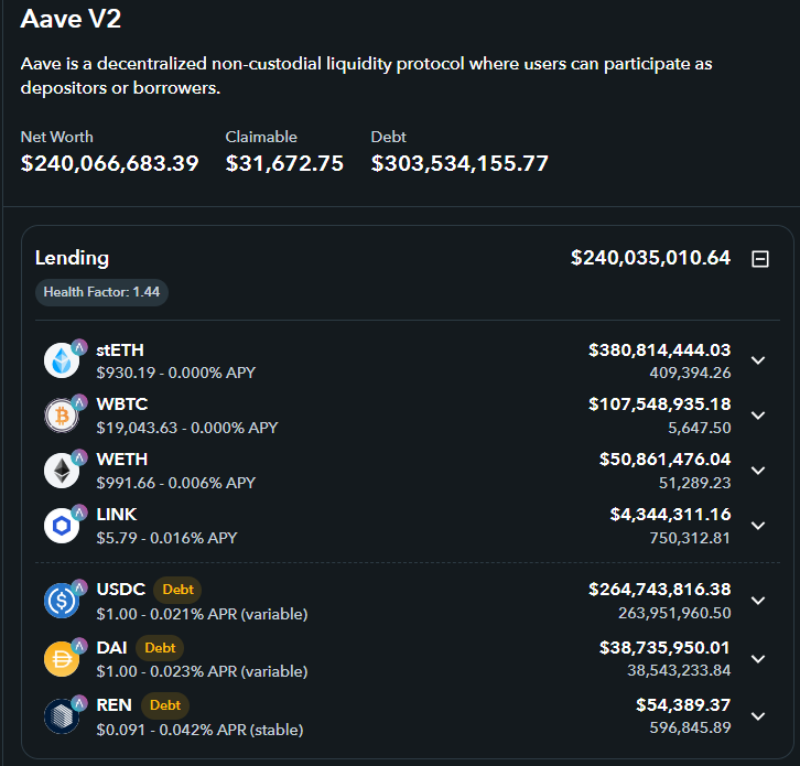 @CelsiusNetwork Interestingly, this has been sent to their main wallet which has the Aave + Compound positions in. I expected this to go to FTX Out.