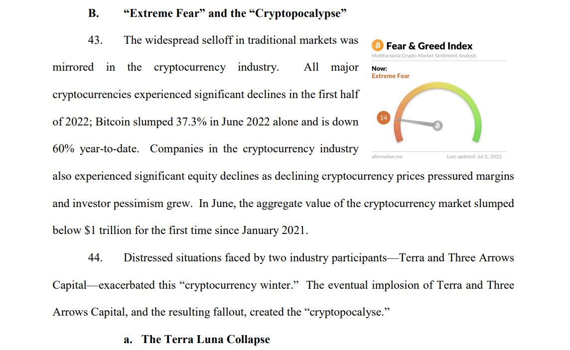 https://twitter.com/0xHamz/status/1544670893980487681?s=20&t=xUU9abYpKrB7SM0Mdcsrog"Circumstances Leading to These Chapter 11 Cases", on pg. 15 Voyager blame: