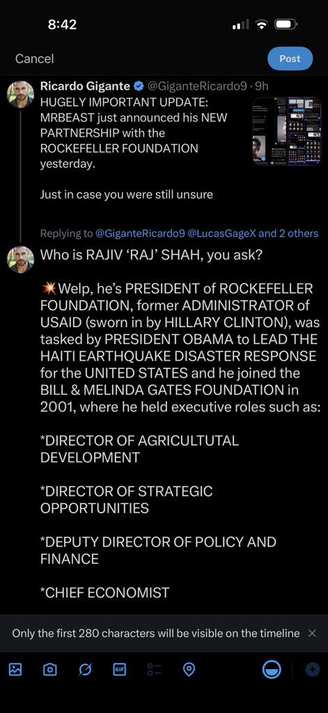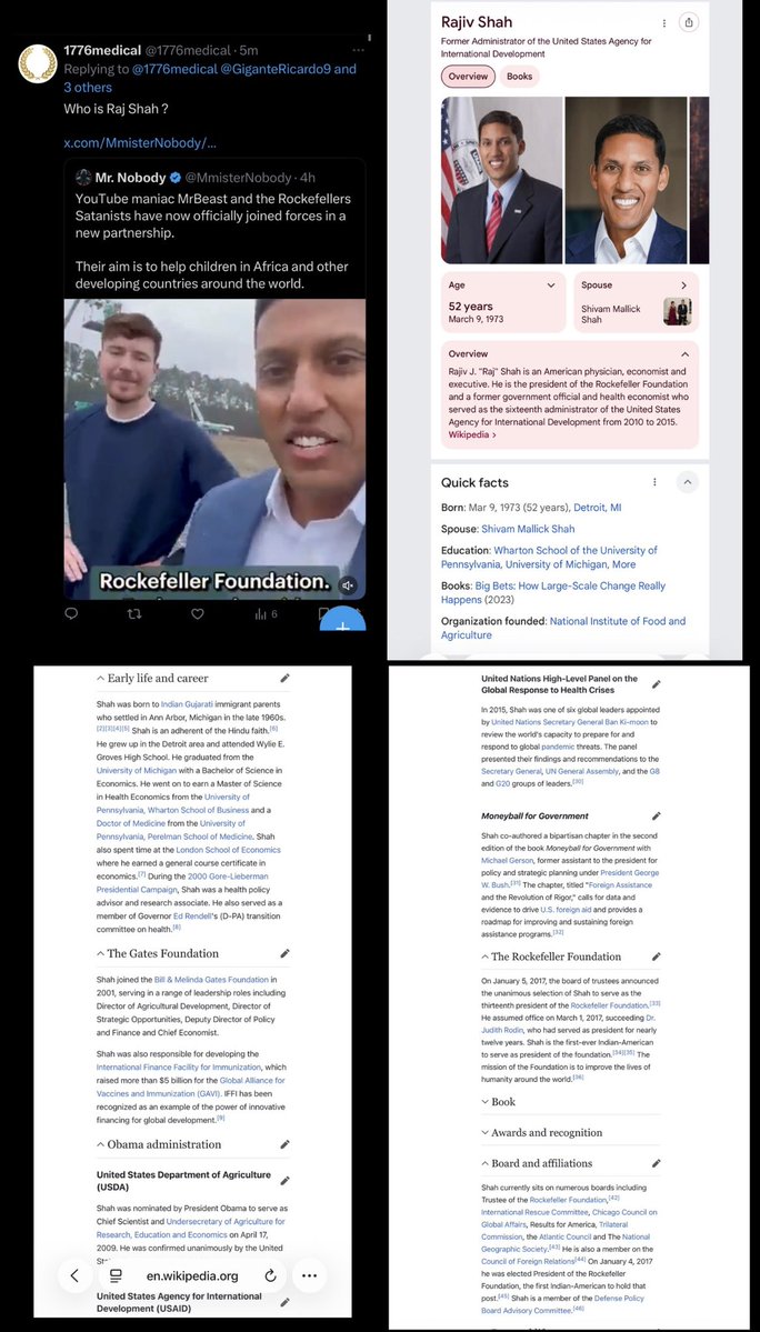 THIS is RAJIV SHAH, PRESIDENT of the ROCKEFELLER FOUNDATION, whom MRBEAST just announced a brand new PARTNERSHIP with. Imagine that, folks.😒