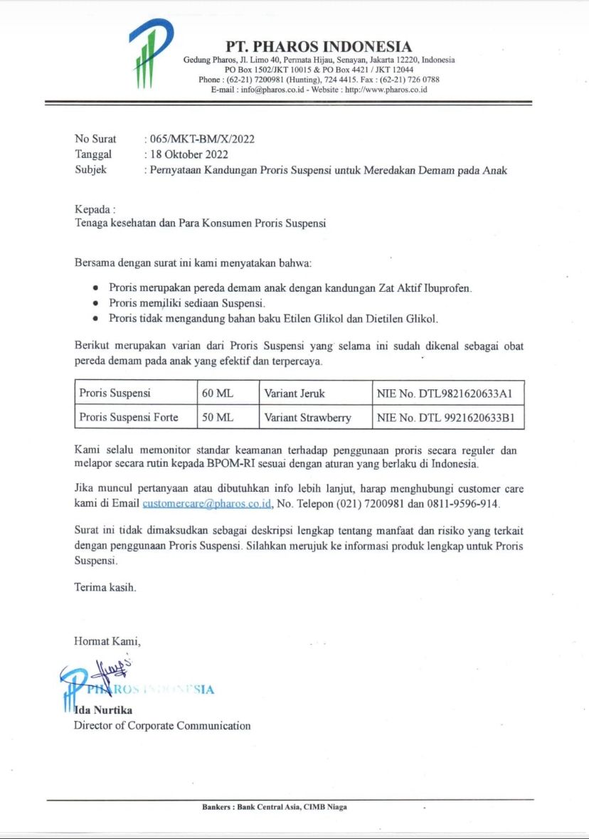 Update pernyataan kemenkes dan distributor obat Farmasi, terkait penggunaan sirup bebas kandungan EG dan DEG..
