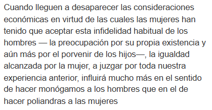 Una vez desaparecidas las consideraciones económicas y de cuidados que "atan" a la mujer, la monogamia -el amor sexual exclusivo y recíproco- podría darse de forma verdaderamente libre.