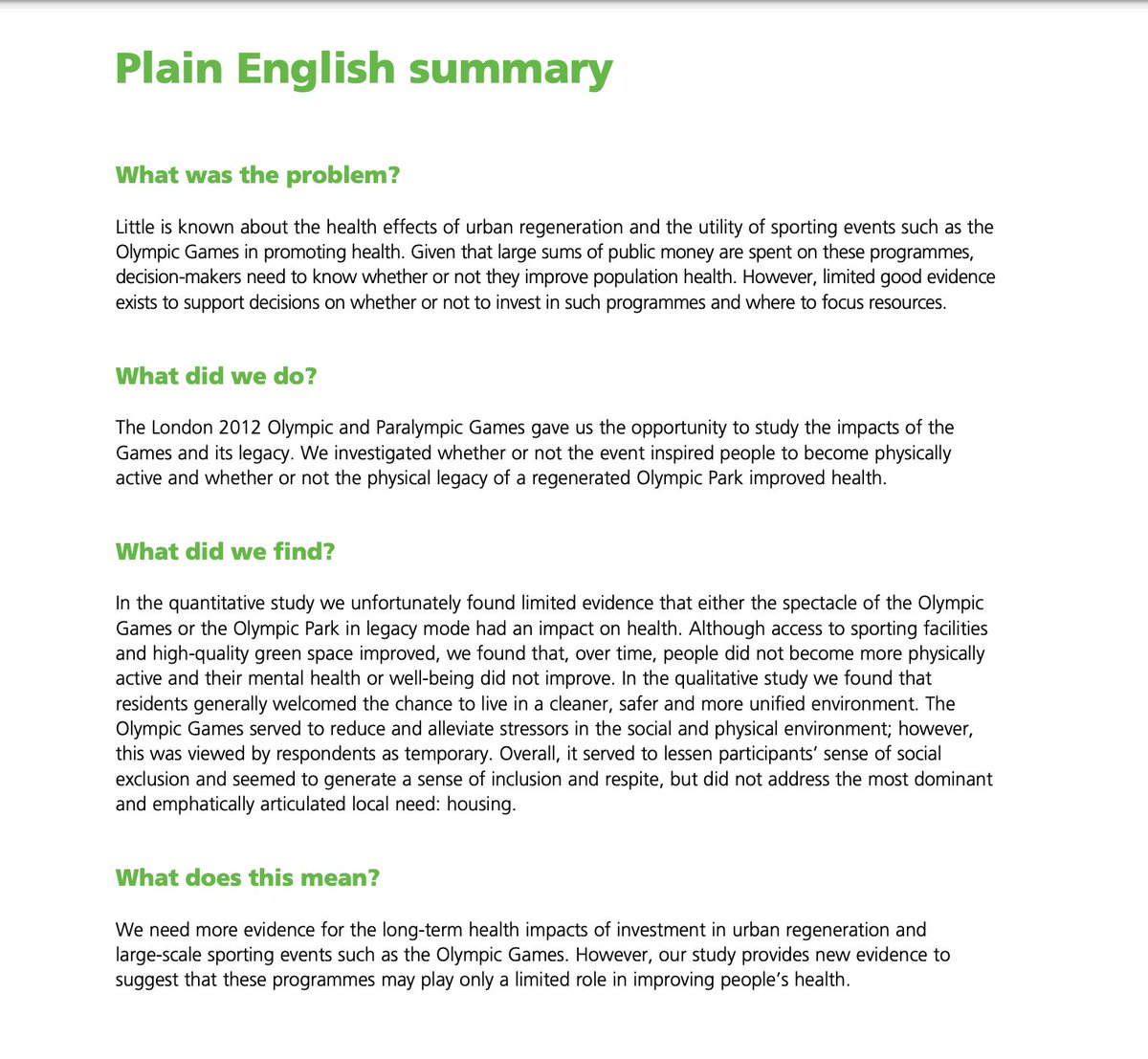 Before we start let's dispel a myth... there is no evidence that the Olympics improve population physical activity levels.