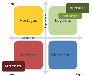 The Apostle Model classifies customers into 4 quadrants based on Net Promoter Score and Likelihood to Repurchase.