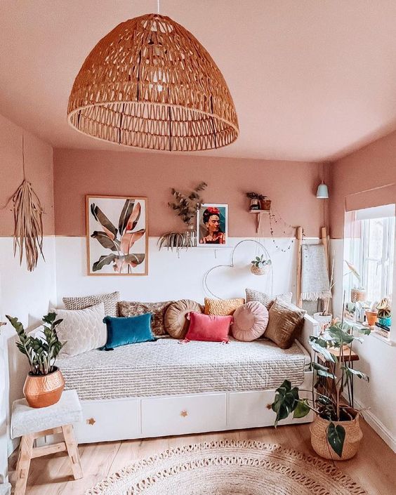 Вписать потолок в палитру сложнее, чем просто сделать его белым: как минимум, эту самую палитру нужно будет заранее продумать. В остальном при правильном использовании у цветного потолка минусов нет.