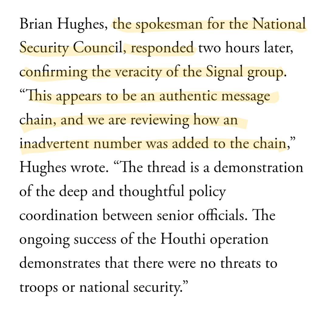 أهم قصة في أمريكا دلوقتي فضيحة عن صحفي كبير من الأتلانتيك اتحط بالغلط في جروپ شات على @signalapp مع نائب الرئيس الأمريكي @JDVance وعدد من قيادات الأمن القومي والإدارة الأمريكية بيناقشوا فيها عملية ضرب اليمن وبيتشاركوا عليها تفاصيل العملية ومبرراتها. [يتبع]