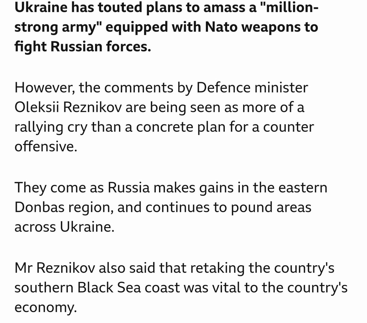 https://twitter.com/mccaffreyr3/status/16162276808187166722/6 He recognized what should have been obvious to everyone: A limited response caused by fear of escalation was a terrible mistake. And he's been proven right. Sure, Ukraine is winning the war, but at what cost? "Well over" 100k casualties according to Gen. Milley.