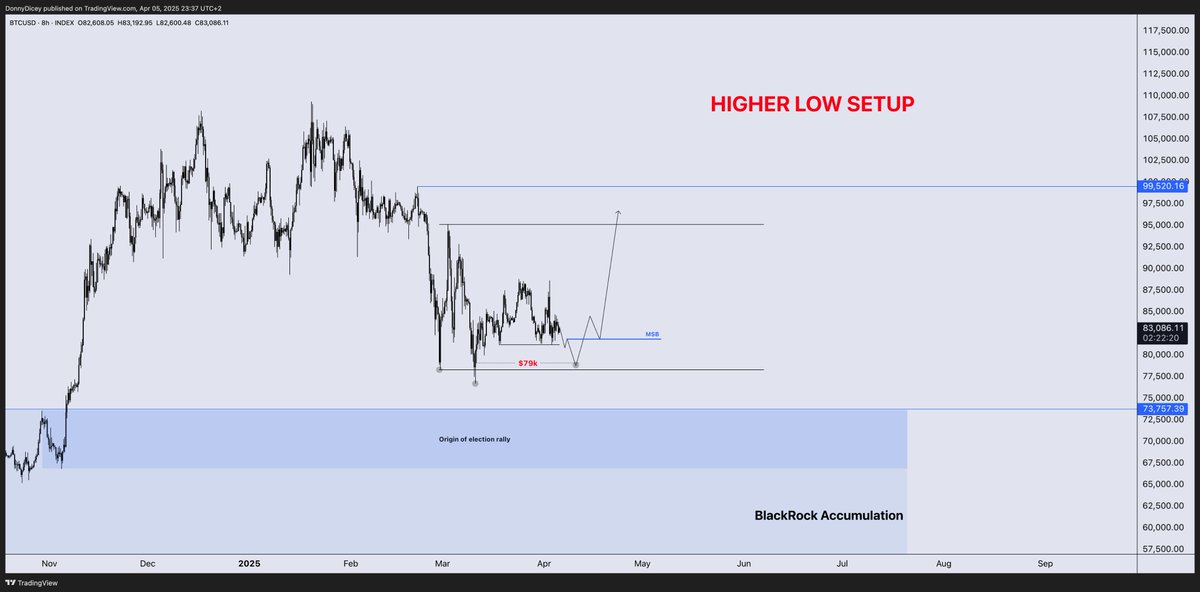 Now looking to form a higher low or a lower low at $73.6k - which is defended by a support zone I've dubbed as “BlackRock Accumulation”.